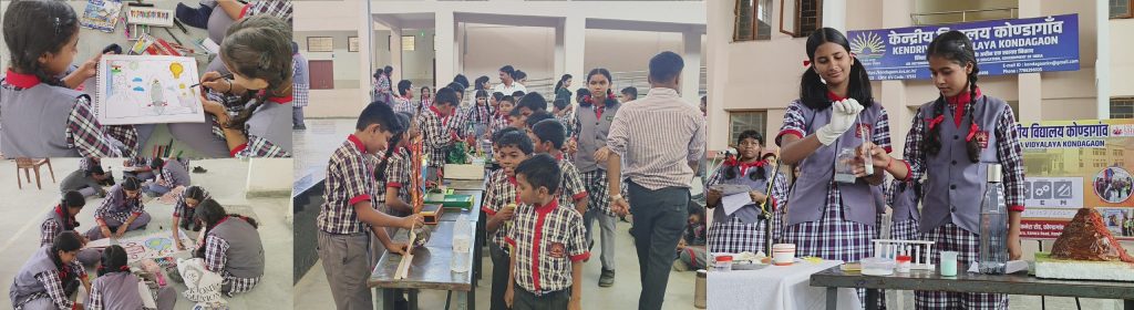 “प्रदर्शनी”: अपने 12 लाख से अधिक बच्चों के बीच वैज्ञानिक सोच को प्रोत्साहित करने के उद्देश्य से, के. वि. सं. तीन अलग-अलग स्तरों पर वार्षिक विज्ञान प्रदर्शनी (राष्ट्रीय) "